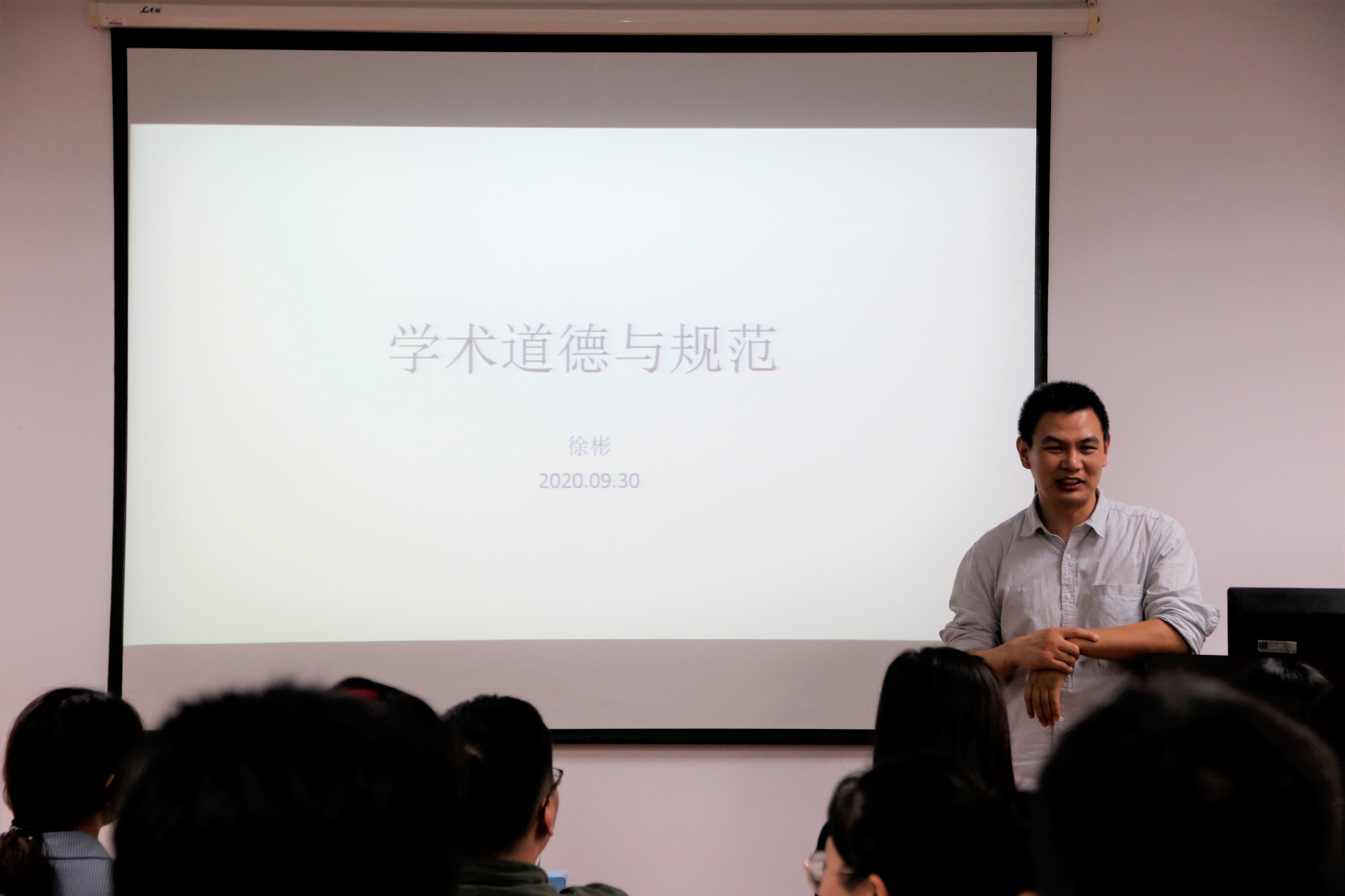 随后,徐彬副院长向新生介绍学术道德与规范。对学术期刊撤稿原因进行分析,强调学术不端的影响,向新生介绍学术不端的行为包括编造数据、歪曲事实等;以错误的科研行为例,教导新生如何正直的科研,若出现纠纷应向导师研究生工作部寻求帮助。最后,他祝愿每位同学都有充实的研究生生活!