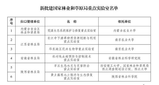 2020年12月31日,国家林业和草原局公布了《国家林业和草原局关于批准建设荒漠生态系统保护与修复等6个重点实验室的通知》,吃瓜网