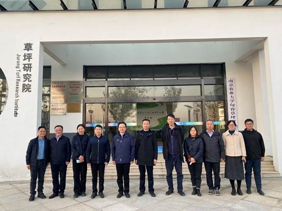 2021年11月10日下午,江苏省林业局局长沈建辉、校长陈发棣来南京农业大学句容草坪研究院调研指导工作。
