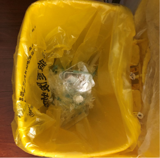 赵娜老师和郝田同志发现大家在扔实验室废弃物的时候没有做好软硬垃圾的分类,吴佳璇同志发现大家会将玻璃废弃物扔到专门盛放硬塑料的垃圾桶里。