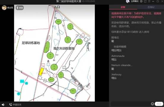 杨老师首先介绍了本次大赛的背景和主题,随后结合地图为我们讲解了比赛设计场地的具体情况。本次大赛要求同学们以在建的句容草坪研究院足球培训基地为应用背景,从“科学创新”出发,以“实用性”为目的,对11片足球场地布局作出规划,并选择其中一片11人制球场用作训练场地做详细的设计和施工说明。