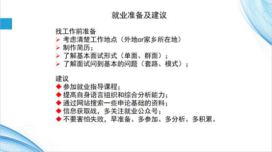 刘芳本次分享主要分为“研究生生活”和“就业准备与建议”两个部分。首先,她以“三个‘宜早不宜晚’”展开第一部分,强调把握时机和规划学习的重要性;接着,她传授了自身求职从思想到技能方面的准备,并安利了武昕宇老师的求职规划课,整个分享干货满满!