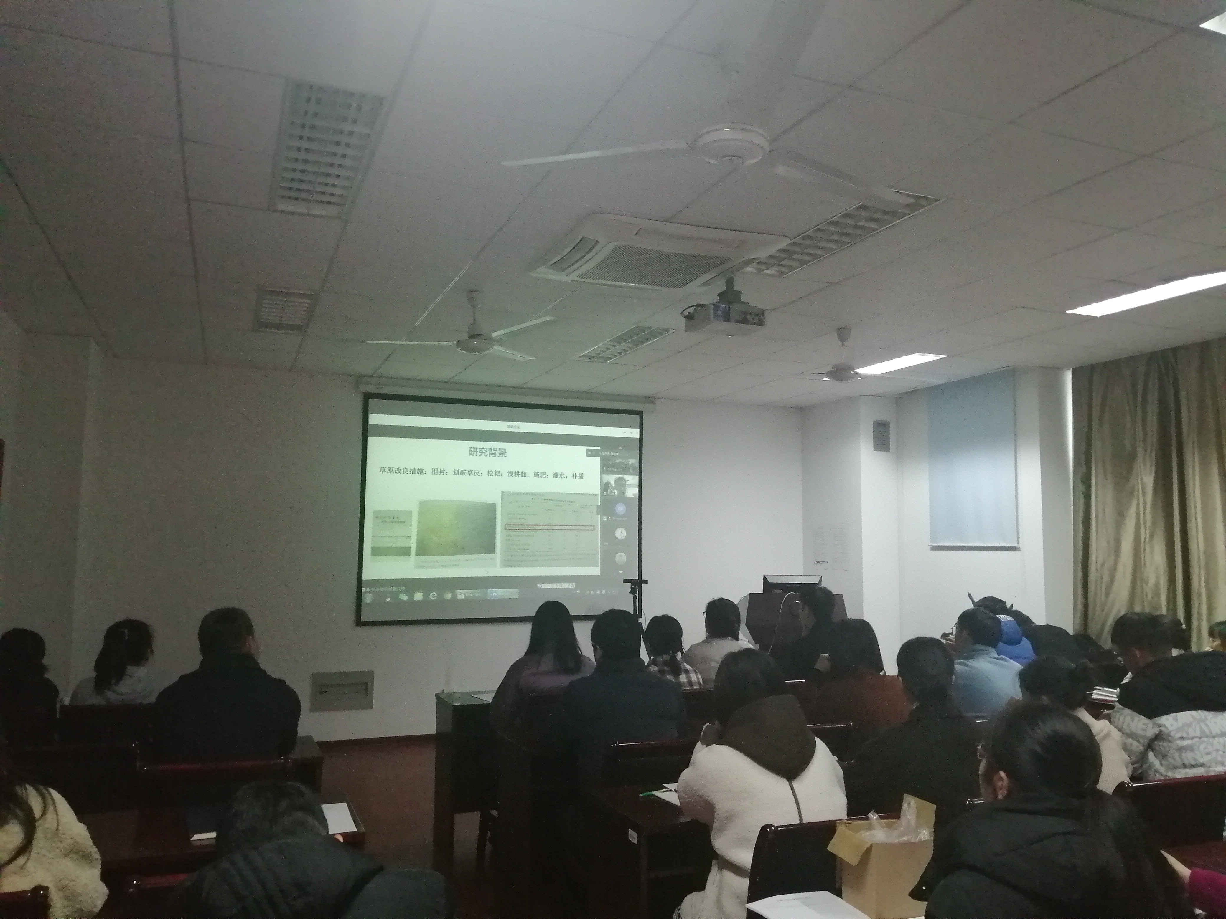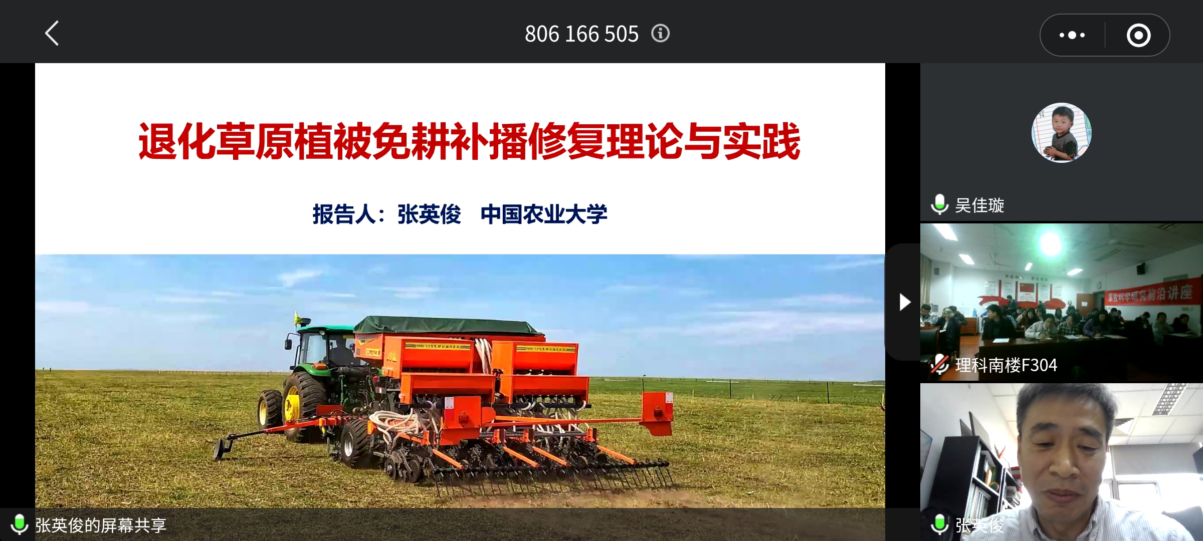 张教授的报告立足退化草原修复学科发展前沿、见解独特、深入浅出,为草业科学、农业机械学科等发展提供了新视角、新思路和新方法。报告会上张英俊回答了与会师生关心的问题,学术氛围热烈浓厚。