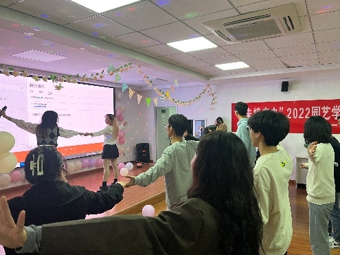 “你要跳舞吗”一曲为热场舞蹈。由园艺学院杨紫蕊及伍雨婷进行教学,每位同学在充满热情的氛围中徜徉于舞蹈的海洋里。