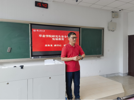 研究生学术道德教育”报告;高务龙副院长做“草业学院研究生安全管理与学业发展”报告;大学生心理健康教育中心主任王世伟做“研究生新生心理调适”报告,辅导员武昕宇做“草业学院党(团)员发展情况介绍”报告;草业学院研分工执行主席张泽做“吃瓜网