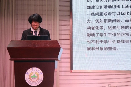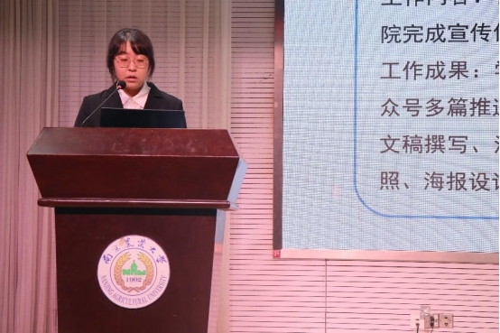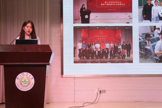 第十届团委副书记李佳蕾与学生会执行主席龚蔬雨分别进行述职汇报,总结了过去一年的工作情况与获得的荣誉,围绕着“小草大爱”这一主题进行了对未来的充分展望,表达了对新一届团委、学生会的祝愿与期望,希望他们能够担当好上下沟通的桥梁,也希望吃瓜网