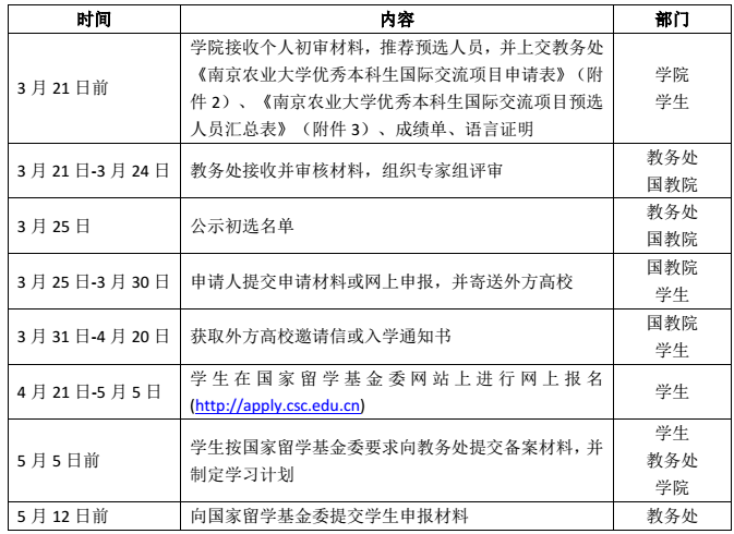 根据国家留学基金管理委员会《关于做好 2018 年优秀本科生国际交流项目申报工作的通知》相关精神,南京农业大学2018 年国家公派优秀本科生国际交流项目选派工作即将开始,现将相关事宜通知如下: